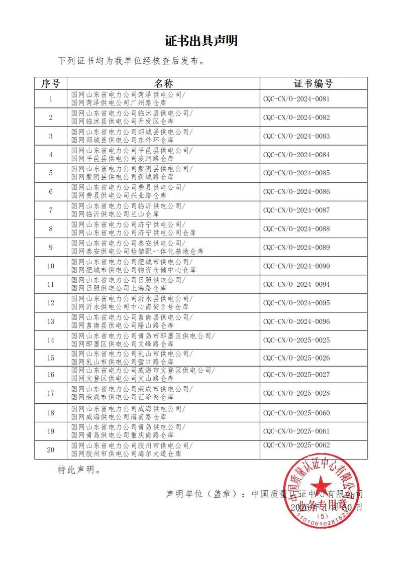 证书出具声明
